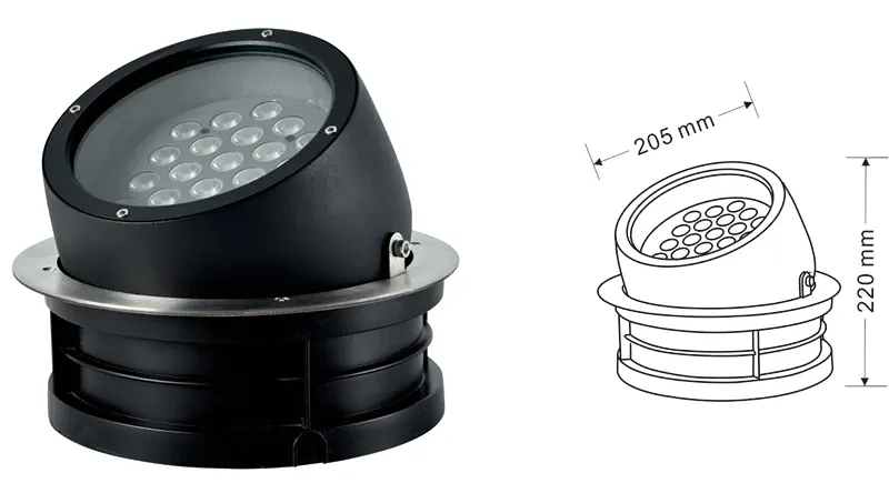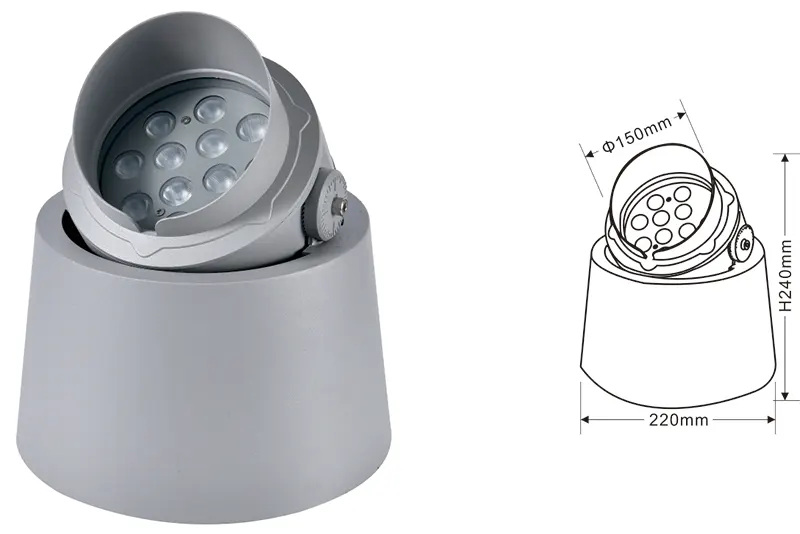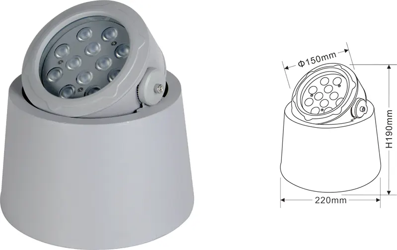 | LEDツリーアップライト | Kons-TGD10-1 | φ150*φ220*H190mm | 12W | 材料:アルミニウム+強化ガラス ブラケットタイプ:調整可能 IP:IP67 オプションの色温度: 3000K/4000K/6500K RGB / DMX512 RGBW / DMX512 従来の灰色、建物のファサードの色に合わせてカスタマイズ可能 |